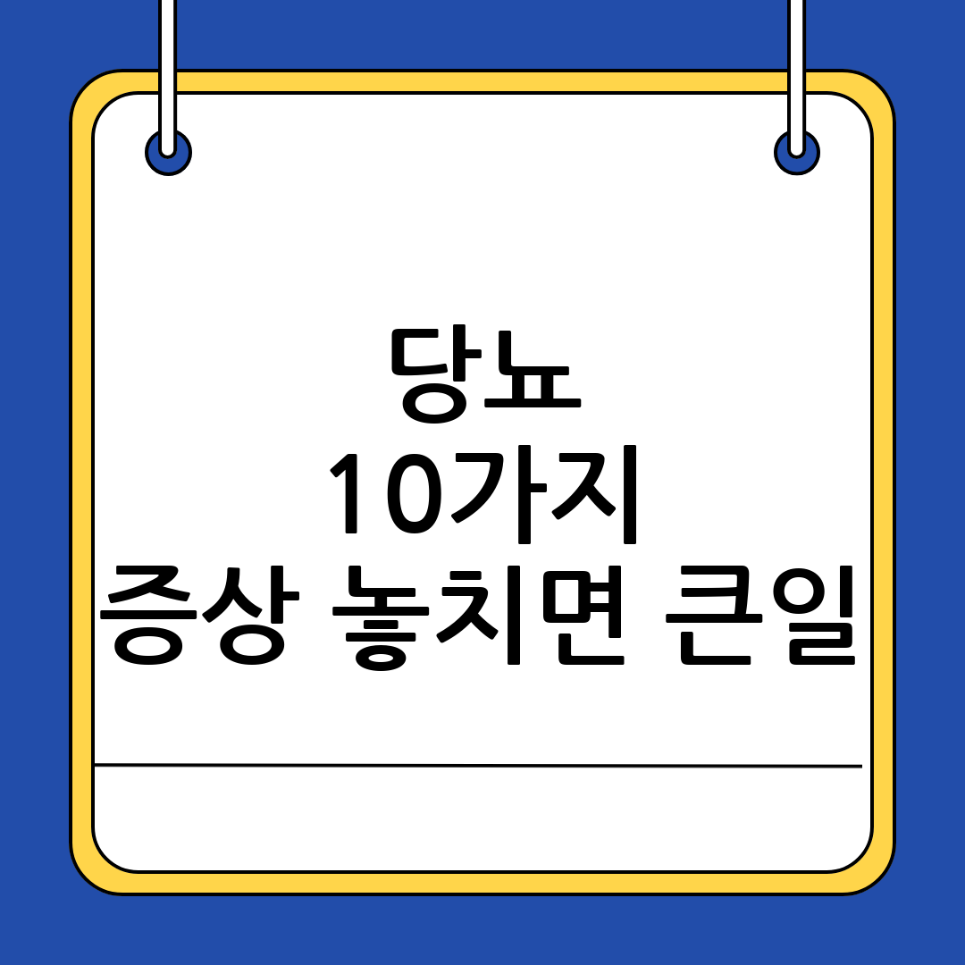 다음은 당뇨 증상 10가지입니다. 이러한 증상이 나타난다면 즉시 병원을 방문하여 검사를 받아보는 것이 좋습니다.