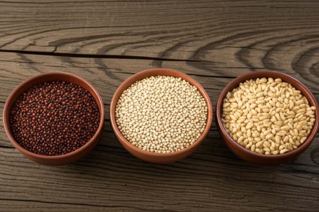 - 귀리, 퀴노아, 보리 등 다양한 통곡물을 활용하여 식단을 다양하게 구성해 보세요.