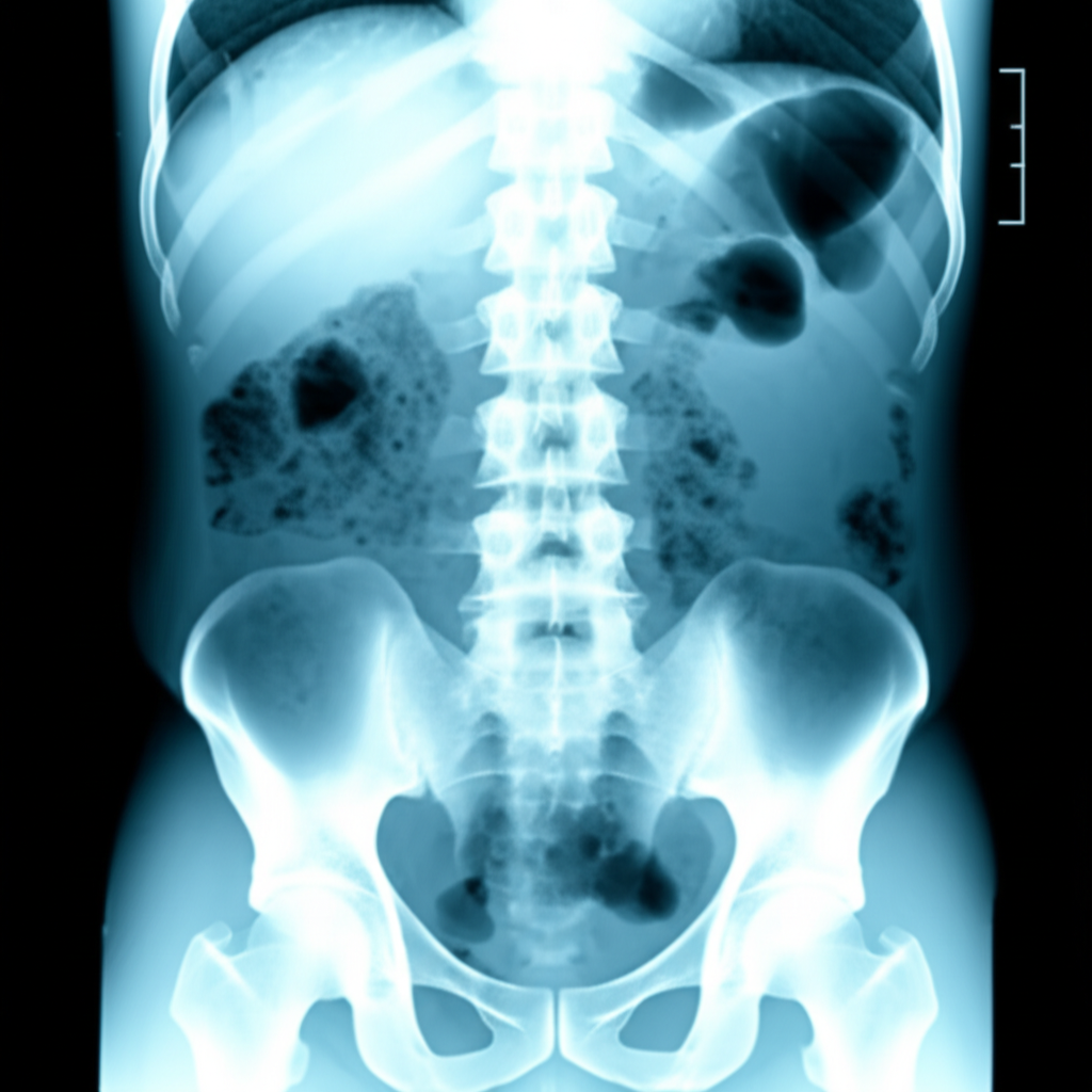 복부 X-ray를 통해 신장 결석, 장폐색 등을 확인할 수 있습니다. 그러나, 작은 결석이나 연조직 질환은 잘 보이지 않을 수 있습니다.