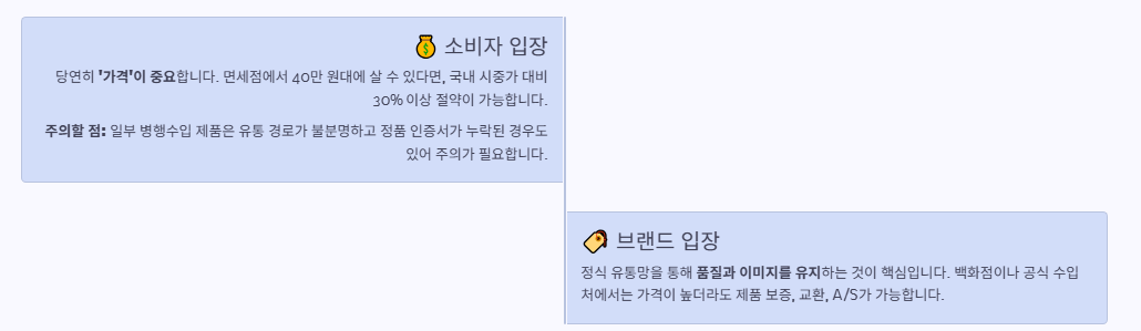 → 선물용이면 정식 유통, 개인용이면 면세점 추천
