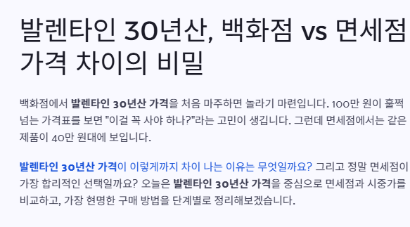 이처럼 시중 발렌타인 30년산 가격은 유통 채널에 따라 차이가 크지만, 공통점은 “비싸다”는 것입니다. 특히 백화점 기준 발렌타인 30년산 가격은 일반 소비자에게 부담이 큽니다.