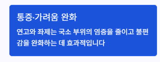 좌욕은 항문 주변 혈액순환을 돕고 통증과 부종을 완화하는 데 효과적입니다.