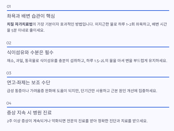 핵심 요약: 치질 자가치료법 한눈에 정리