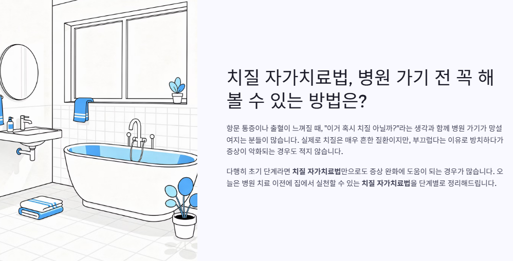 오늘은 병원 치료 이전에 실천할 수 있는 치질 자가치료법을 단계별로 정리해드립니다.