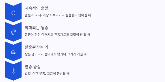 출혈이 반복되거나, 통증이 심하고 덩어리가 계속 튀어나온다면