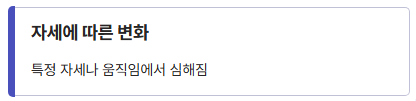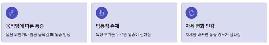 - 몸을 비틀거나 팔을 움직일 때 통증 발생