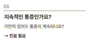 - 가만히 있어도 통증이 계속되나요? → 진료 필요