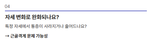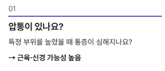 - 눌렀을 때 통증이 심해지나요? → 근육·신경 가능성
