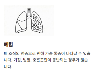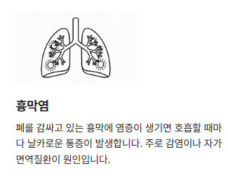 흉막염, 폐 질환이 오른쪽 가슴 통증 찌르르한 느낌으로 나타날 수 있습니다.