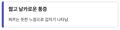 오른쪽 가슴 통증 찌르르한 느낌은 보통 다음과 같은 특징을 보입니다.