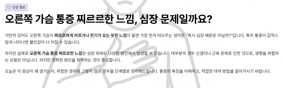 1️⃣ 오른쪽 가슴 통증 찌르르한 느낌, 특징부터 살펴보세요