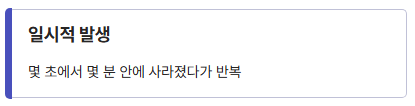 - 몇 초~몇 분 안에 사라졌다가 반복
