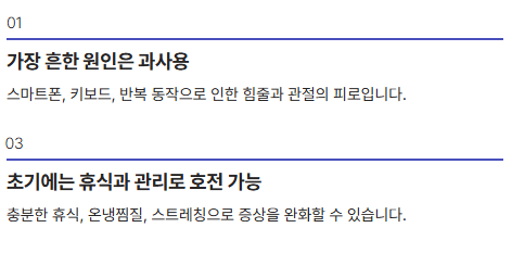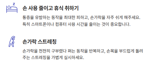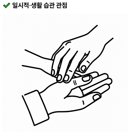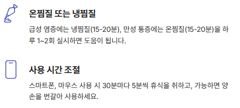스마트폰 사용, 키보드 타이핑, 집안일, 반복적인 손동작은