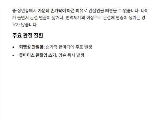 3️⃣ 관절 문제도 가운데 손가락이 아픈 이유가 됩니다