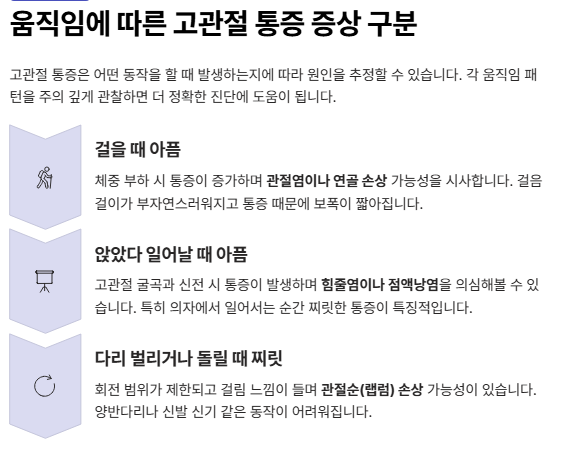 2️⃣ 움직임에 따른 고관절 통증 증상 구분