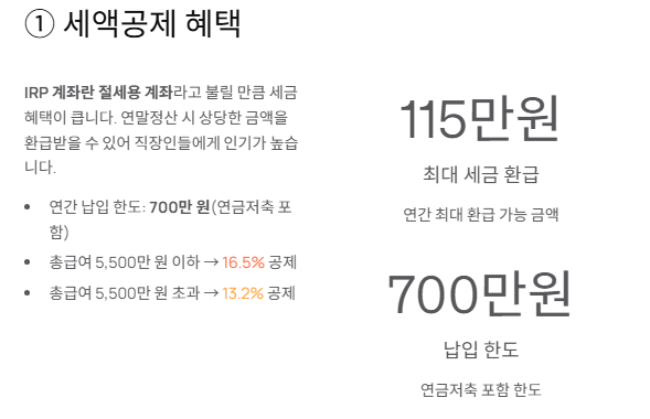 IRP 계좌란 절세용 계좌라고 불릴 만큼 세금 혜택이 큽니다.