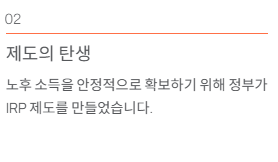 이를 막고 노후 소득을 안정적으로 확보하기 위해 만든 제도가 IRP입니다.