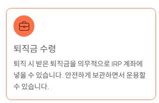 - 퇴직 시 받은 퇴직금을 의무적으로 넣을 수 있고