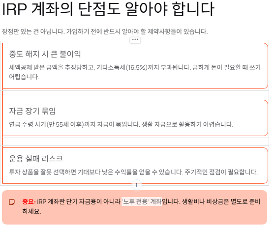 6️⃣ IRP 계좌의 단점도 알아야 합니다
