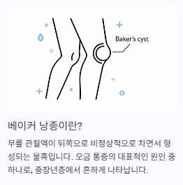 - 베이커 낭종, 관절염, 연골 손상도 주요 원인
