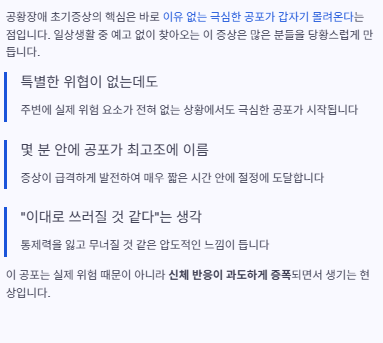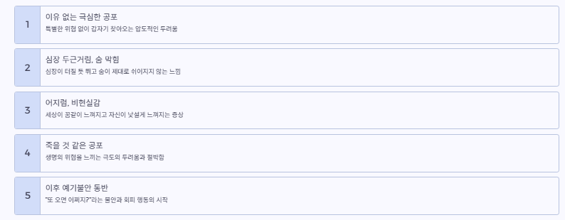 아래에서 공황장애 초기증상을 단계별로 정리해드립니다.