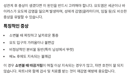 - 소변볼 때 통증