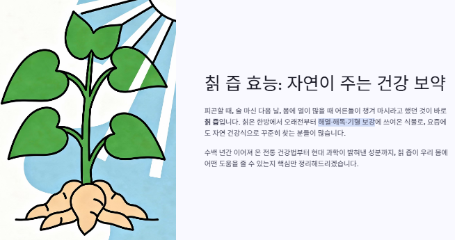1️⃣ 숙취 해소에 도움 되는 칡 즙 효능