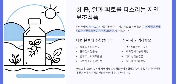 결론: 칡 즙 효능은 ‘열과 피로를 다스리는 보조 역할’