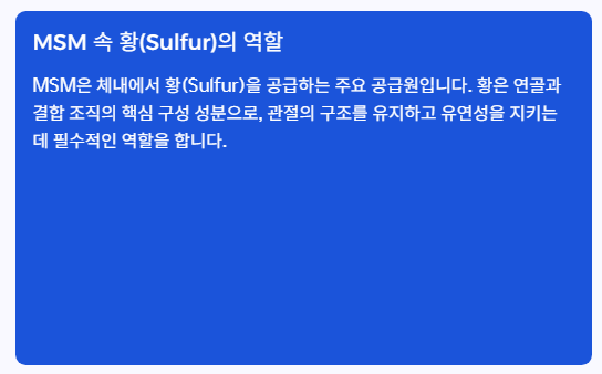 MSM은 황(Sulfur) 성분을 포함하고 있어