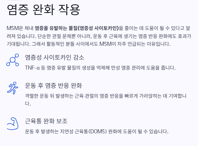 이 역시 언급되는 MSM의 효능입니다.