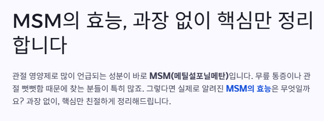- 대표적인 MSM의 효능: 관절 통증 완화 보조