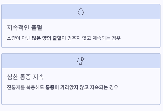 - 출혈이 계속 많을 때