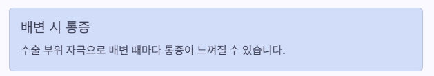 - 배변 통증은 아직 존재