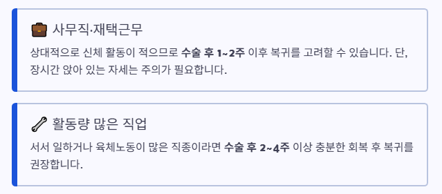 - 사무직: 1~2주 후 복귀 가능