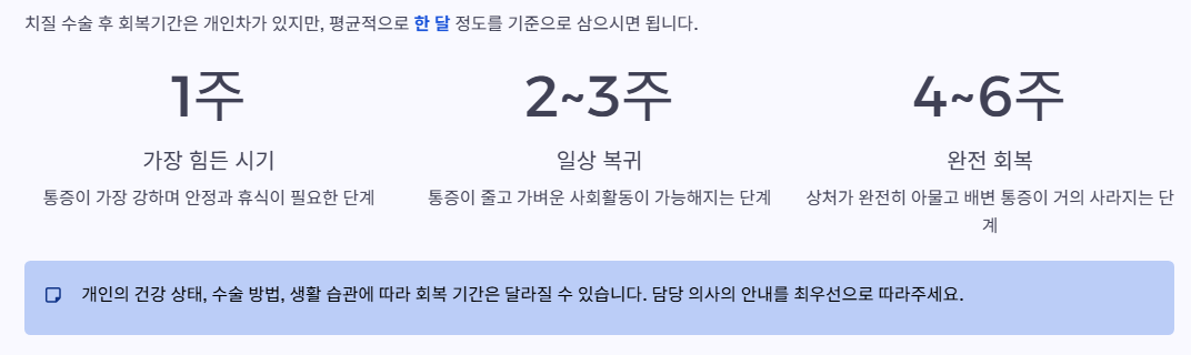 보통 치질 수술후 회복기간은